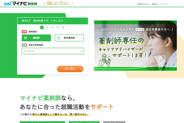 なお以下のマイナビ薬剤師であれば、2026年でのスピード内定であっても可能です(マイナビのプロモーションを含みます)。